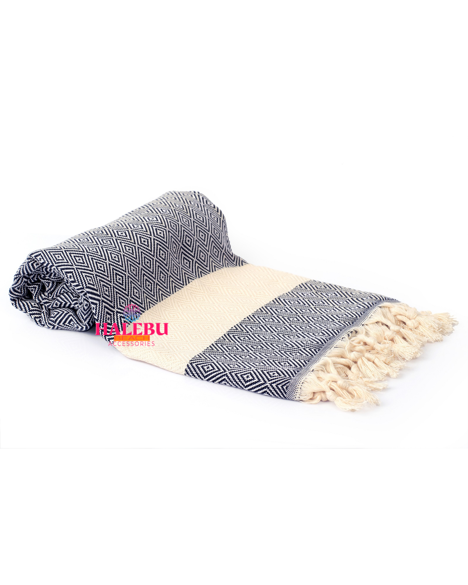Navy Blue Color Diamond Pattern Design Beach Towel